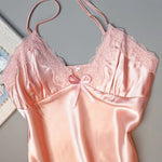 Summer New Women's Cool Silk Sleepwear Strap Sexy Charm Lace Trim Breathable Short Skirt Nightgown Comfortable Home Clothes