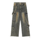 American retro multi-pocket workwear jeans men's and women's fashion brand loose washed old straight wide-leg trousers