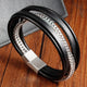 Black Leather Rope Stainless Steel Double Layer Men's Woven Hand Chain Handmade Multi-layer Leather Bracelet Geometric Pattern