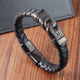 Trendy Totem Bracelet Genuine Leather Woven Stainless Steel Black Leather Bracelet Unisex Geometric Pattern Polished Craft