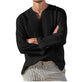 Cotton Linen Men's Long Sleeve V-neck Casual Beach Linen Shirt Fashion Leisure Men's Clothing Casual And Breathable Shirt