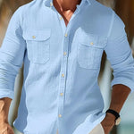 Men's Autumn And Winter New Work Clothes Pocket Lapels Long-sleeved Shirt
