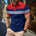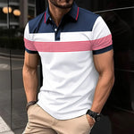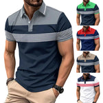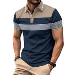 Men's Casual V-neck Button Business Striped All-matching Polot Shirt