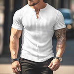 Men's Short Sleeve Top Sunken Stripe V-neck Slim Fit Henley T-shirt