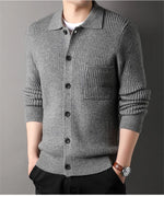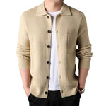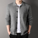 Twist Jacquard Lapel Sweater Cardigan Men's Outer Wear Autumn And Winter Trends Fashion Slim Knit Top Coat
