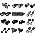 Black Earring Set For Men Personality Combination 12 Pairs Stainless Steel Geometric Pattern Basic Style Triangular And Circular