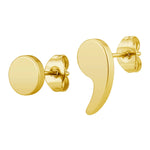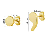 Fashionable Comma Shaped Titanium Steel Ear Studs Electroplated Round Butterfly Buckle Simple Stainless Steel Earrings For Unisex