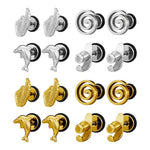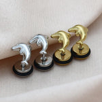 Fashionable Niche Dolphin Feather Sword Handle Earrings Simple Versatile Titanium Steel Jewelry Unisex Sweet Cool Style