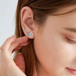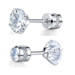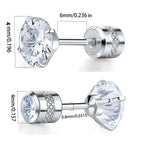 Fashionable Round Zircon Fine Needle Stud Earrings Stainless Steel Plated Dual Diamond Ear Jewelry Geometric Pattern Unisex