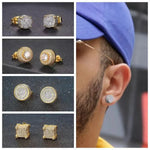 Full Drill Hip Hop Men's Earrings Round Square Zirconia Dominant Street Personality Best Selling Ear Jewelry
