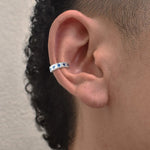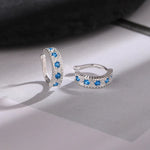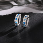 Luxurious Blue White Diamond Men's Earrings Summer Fresh Zirconia Hoops Simple Design Round Studs Fashionable Jewelry