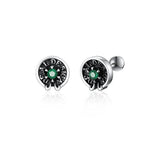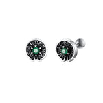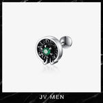 Men's Retro Green Gemstone Stud Earrings Fashionable Letter Ear Cuff For Pierced Ears Ideal Gift For Boyfriend Male Ear Jewelry