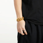 Pattern: Geometric Plating Material: 18K Gold Plated Gold Plating Process: PVD Coated Craft: Plating Quantity: 1 Piece Occasion: Street Plating Material: 18K Real Gold Plated Material: 304 Stainless Steel Classification: Bracelets Style: Hip-Hop Gender: Men'S...