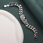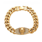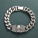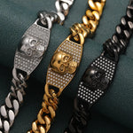 Fashionable Punk Skull Head Cuban Chain Bracelet Cool Hip Hop Accessory Stainless Steel U-Shaped Design For Men And Women