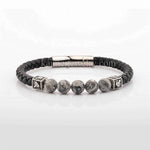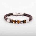 Fashionable Stainless Steel Leather Woven Bracelet Natural Stone Beaded Jewelry Hand Chain Accessory