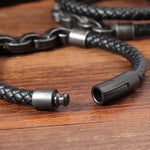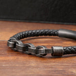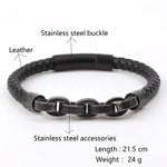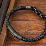 Handmade Men's Geometric Hollow Stainless Steel Wristband Magnetic Buckle Multifunctional Casual Fashion Jewelry Black Leather