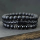 Men's 3-Piece Set 8mm Agate Tiger Eye Stone Bracelet Leather Magnetic Buckle Bracelet Fashionable Geometric Pattern Alloy Hand Chain