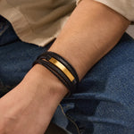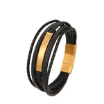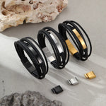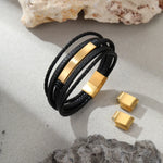 Men's Four-Layer Leather Stainless Steel Bracelet DIY Engraving Titanium Steel Gold Plated Hand Jewelry Rectangular Pattern Casual Cool
