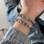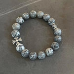 Natural Stone Cross Bracelet For Men Street Style Couple Matching Accessory Fashionable Geometric Pattern Mixed Material