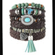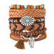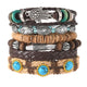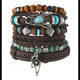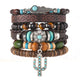 New Bohemian Style Cactus Head Men's Bracelet Multi-Layer Wood Beads DIY 6-Piece Set Hand-Knitted Zinc Alloy Geometric Pattern