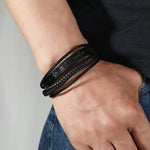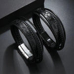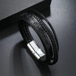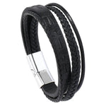 New Men's Wristband Alloy Magnetic Buckle Leather Bracelet Woven Cross Pattern Personalized Jewelry Fashion Accessory