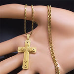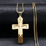 New Stylish Minimalist Men's Stainless Steel Cross Pendant Necklace Gold Chain Jewelry Accessory Geometric Pattern Original Design