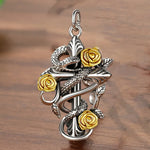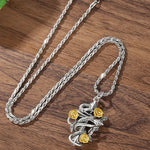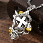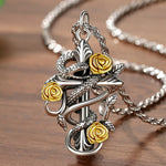 Personalized Dual Tone Snake Cross Pendant Necklace Unisex Rose Flower Design Zodiac Animal Sign Retro Snake Shape Jewelry