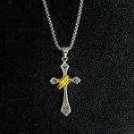 Retro Cross Necklace Men's Trendy Long Sweater Chain Roman 3D Cross Pendant Simple Versatile Minimalist Geometric Pattern