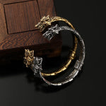 Retro Viking Wolf Open Hand Bracelet Men's Celtic Knot Punk Fashion Versatile Alloy Jewelry Unisex Wolf Design Plated Alloy