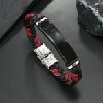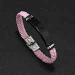 Stainless Steel Simple Woven Bracelet Black Gloss Board Engraving Colorful Leather Men's Bracelet Fashionable Unisex Accessory