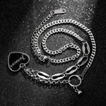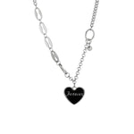 Trendy Long Titanium Steel Heart Shaped Necklace For Women Simple Style Black Letter Love Lockbone Chain Accessory Hot Girl