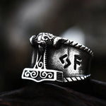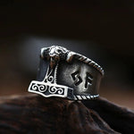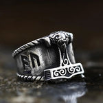 Beier Nordic Viking Thor's Hammer Titanium Steel Ring Retro Stainless Steel Crowbill Ring Hand Jewelry Unisex Polished Finish