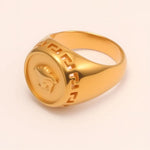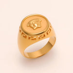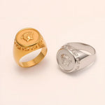 Fashionable 316 Stainless Steel Engraved Ring Hollow Out Design Mysterious Medusa Pattern Geometric Ring Simple Vintage Style