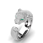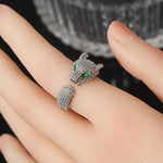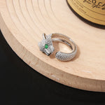 Fashionable European Open Hand Ring With Embedded Diamond Leopard Head Design Unisex Animal Zodiac Pattern Zinc Alloy Jewelry