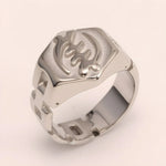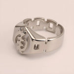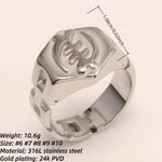 Geometric Pattern Hollow Out Stainless Steel Ring Eight Sided Relief Carving Unique Personality Open Ring Simple Vintage Style