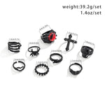 Gothic Halloween Men's Hip Hop Ring Set Versatile Stackable Personality Alloy Skull Head Electric Plating U-Shaped Jewelry