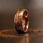 Guitar String Style Stainless Steel Rings 8mm Rose Gold Triple Slot Spring Wire Barrel Wood Pattern New Chinese Style Jewelry