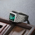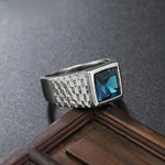 New R0099-NK03 Titanium Steel Ring Gemstone Fashion Unisex Ring Simple Stylish European Personality Ring Vintage Style Quadrate
