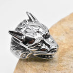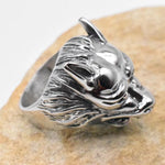 Trendy Stainless Steel Wolf Head Ring Punk Style Men's Jewelry Geometric Pattern Titanium Steel Rings Retro Polished Finish