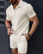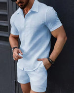 2025 Fashion New Men's Casual Sports Suit, Short Sleeve Shirt Shorts, Suitable for Beach Sports and Leisure