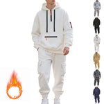 American Style Fleece Lined Casual Men's Workwear Set Winter Thickened Loose Fit Multi Pocket Leisure Sportswear Ensemble
