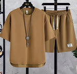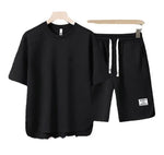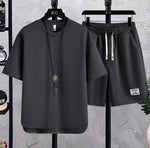 Fashionable suit Men's Waffkle Short-sleeved T-shirt Fashionable Brand Summer New Loose New Fashionable Sports Casual Two-piece Set
