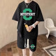 High Street Lazy Style Sportswear suit Boys Summer Short-sleeved T-shirt Shorts Two-piece Clothes Men's Set