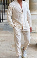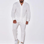 Men's Casual Sports Set Linen Long Sleeve Autumn Fashion Workwear Trousers Two-Piece Set Comfortable Breathable Lightweight
