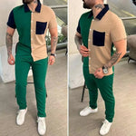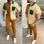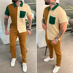 Pattern: Color Block Quantity: 2 Pieces Set Sets Type: Pants Sets Occasion: Casual Fabric Type: Cotton Blend,Polyester Neckline: Turndown Sleeve Length: Short Sleeve Style: Simple Style Season: Summer Fit Type: Regular Fit Gender: Men's Weight:...