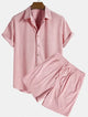 Men's Solid Color Casual Turndown Short Sleeve Loose Men's Sets