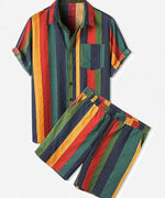 Pattern: Stripe Design: Printing Quantity: 2 Pieces Set Sets Type: Pants Sets Occasion: Casual Fabric Type: Polyester Neckline: Turndown Sleeve Length: Short Sleeve Style: Simple Style Season: Summer Fit Type: Loose Gender: Men's Weight: 1100g...
