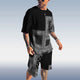 Men's Summer Casual Fashion Beach Style Digital Print Short Sleeve Shorts Set Polyester Mesh Sportswear Comfortable Texture