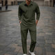 Men's Summer Casual Long Sleeve Embroidered Fabric Pants Set Elastic Collar Sweat Absorbent Sporty Comfortable Fit