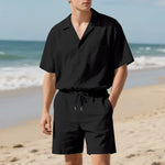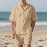 Men's Summer Casual Loose Beach Vacation Shirt Shorts Suit Short Sleeve Lightweight Comfortable Polyester Fabric Suitable for Vacation